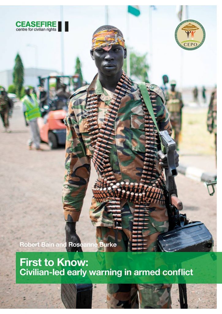 Civilian-led early warning of violence in armed conflict is a viable technique that has significant potential to save lives by alerting both responsible authorities and civilian populations of impending threats, finds a new report. ‘First to Know: Civilian-led early warning in armed conflict’ examines the lessons learned from a pilot early warning system in South Sudan implemented by Ceasefire and the Community Empowerment for Progress Organisation.